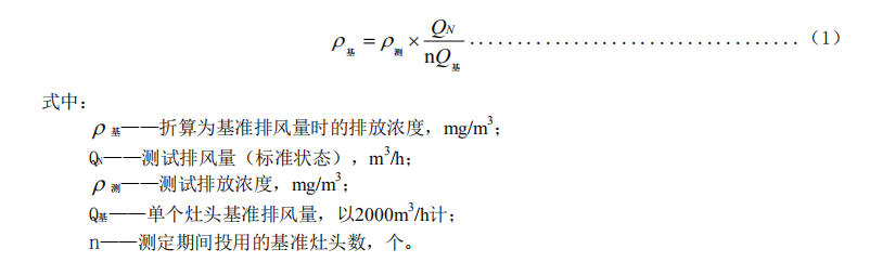 获得油烟、颗粒物和非甲烷总烃的测试排放浓度后,应将测试排放浓度折算为基准风量时的排放浓