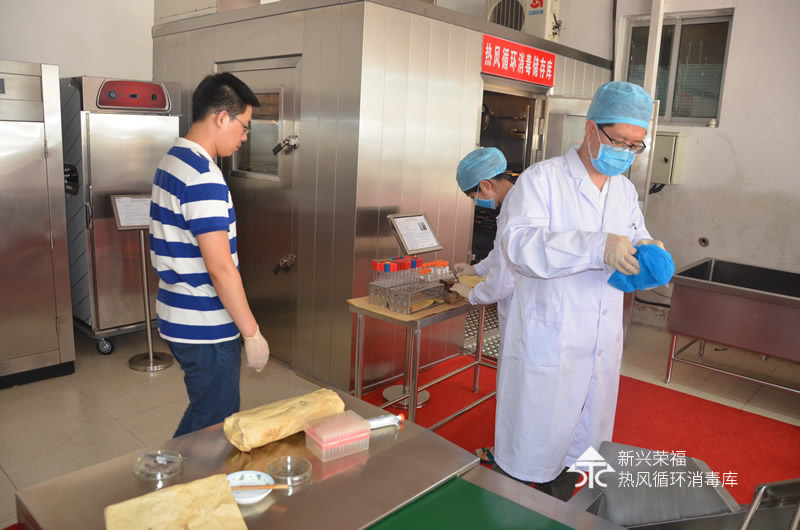 张俊平介绍,热风循环消毒存储库采用高科技材料和技术,具有节能低碳、消毒均衡、消毒容积大、消毒效率高、环保安全等特点,优于其他任何传统的消毒方式,特别适合于宾馆,酒店、医院、学校、部队、厂矿、团体、食堂等场所进行餐具,工具、医疗器械、餐巾、桌布等的消毒灭菌和烘干存储。