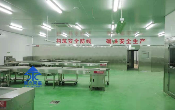 进入分餐净化间的人员需经过两次风淋室、两次更衣,车间内还安装了紫外线杀菌,臭氧消毒设施;配有独立的净化空调空调确保了学生的入口食物的绝对安全。