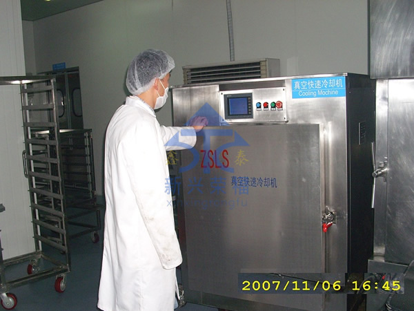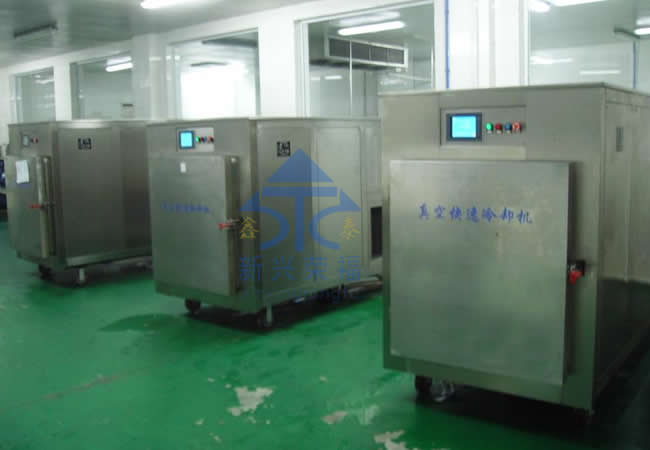 由于食品适宜细菌繁殖的温度带是 20--65 ℃ 。真空快速冷却能够迅速降低熟食品出锅后的热量,防止高温下的食品氧化,同时由于食品在密封的真空环境下快速冷却,可以避免空气中细菌再次污染。 从而延长保质期。