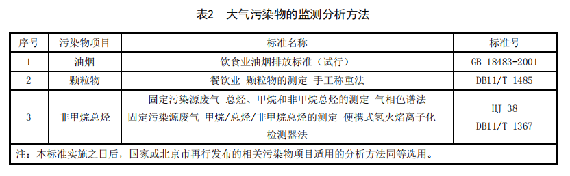 餐饮业大气污染物的分析测定应按照表2规定的方法执行。