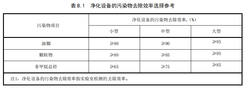 B.1 在新建或更换污染物净化设备时,餐饮服务单位应根据其规模大小、排放的主要污染物种类选择