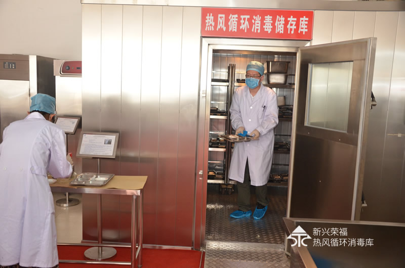 张俊平介绍,热风循环消毒存储库采用高科技材料和技术,具有节能低碳、消毒均衡、消毒容积大、消毒效率高、环保安全等特点,优于其他任何传统的消毒方式,特别适合于宾馆,酒店、医院、学校、部队、厂矿、团体、食堂等场所进行餐具,工具、医疗器械、餐巾、桌布等的消毒灭菌和烘干存储。