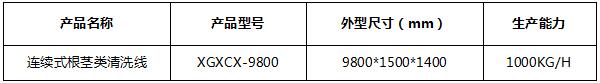 两台根茎去皮机、两台根茎切菜机、一台提升输高机、一台连续式洗菜机、一台振动沥水筛。
